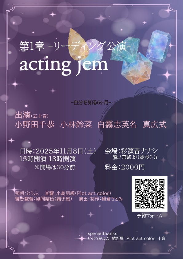 acting jam 2025.10.16 最終更新日時 : 2025.11.04 admin 2025.10.16 最終更新日時 : 2025.11.04 admin acting jam 11月08日(土)11月08日(土)開場14:30開演15:00チケット料金(前売り・当日)2,000円出演者小野田千恭 小林鈴菜